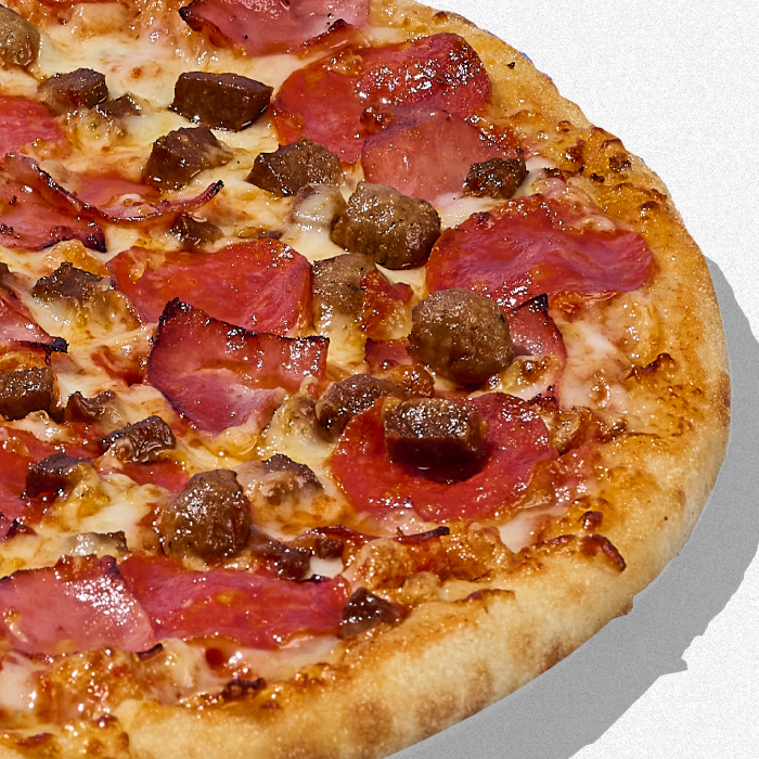 Queso Mozarella, Jamón, Carne, Salchicha Italiana, Pepperoni y Extra Queso